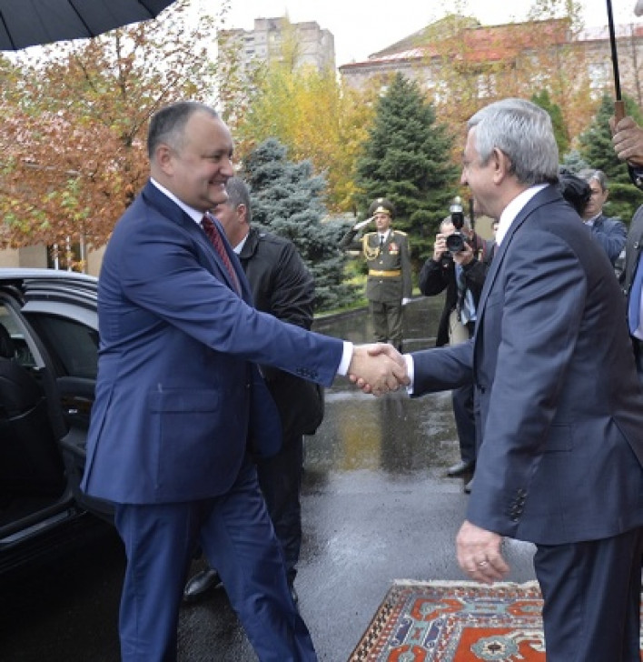 Նախագահի նստավայրում այսօր տեղի է ունեցել պաշտոնական այցով Հայաստան ժամանած Մոլդովայի նախագահ Իգոր Դոդոնի հրաժեշտի պաշտոնական արարողությունը: Մինչ այդ տեղի ունեցած առանձնազրույցի ընթացքում երկու երկրների ղեկավարները բարձր են գնահատել այցի շրջանակներում կայացած բանակցությունների արդյունքները, որոնք, կողմերի համոզմամբ, նոր ազդակ կհաղորդեն հայ-մոլդովական բարեկամական հարաբերությունների զարգացմանն ու փոխադարձ հետաքրքրություն ներկայացնող ոլորտներում համագործակցության խորացմանը: «Հարգելի՛ Իգոր Նիկոլայի, Ցանկանում եմ ևս մեկ անգամ համոզմունք հայտնել, որ Ձեր այցը Հայաստան կհարստացնի մեր հարաբերությունների և համագործակցության օրակարգը քաղաքական, տնտեսական, հումանիտար բնագավառներում, որովհետև իրականում մենք դրա կարիքն ունենք, և այն բխում է մեր ժողովուրդների շահերից: Երեկ Դուք եղել եք Ազգային ժողովում, այսօր կհանդիպեք Հայաստանի վարչապետի հետ, այսինքն՝ հնարավորություն կա բոլոր հարցերի շուրջ բանակցություններ վարելու: Իհարկե, մենք շատ ընդհանուր բան ունենք և՛ երկկողմ հարաբերություններում, և՛ մեր ժողովուրդների ձգտումներում, ինչպես նաև մեր անձնական ձգտումներում, և համագործակցության միջոցով կհասնենք հաջողությունների: Կարծում եմ՝ մենք միայն այդպես պետք է առաջ շարժվենք: Եվս մեկ անգամ շնորհակալություն այցի համար: Մենք արդյունավետ բանակցություններ ենք վարել, փոխադարձ հետաքրքրություն ներկայացնող շատ խնդիրների շուրջ ենք խոսել»,- ասել է Նախագահ Սարգսյանը: Մոլդովայի նախագահը շնորհակալություն է հայտնել գործընկերոջը հրավերի և, իր բնորոշմամբ, հրաշալի ընդունելության համար՝ ընդգծելով, որ համոզված կարող է ասել՝ այցն արդյունավետ էր, ինչպես և սպասվում էր: «Մենք երեկ, ըստ էության, անդրադարձանք մեր երկկողմ համագործակցության բոլոր հարցերին: Պայմանավորվեցինք, որ առաջիկայում կանցկացնենք միջկառավարական հանձնաժողովի նիստ: Հուսով եմ, որ դա տեղի կունենա հաջորդ տարվա առաջին կեսին՝ գործարարների համաժողովի հետ միասին: Մենք երեկ շատ արդյունավետ շփումներ ունեցանք խորհրդարանի ղեկավարության և պատգամավորների հետ: Պայմանավորվեցինք, որ նախաձեռնությամբ հանդես կգանք, և Հայաստանի խորհրդարանի այն պատգամավորներին, ովքեր պետք է աշխատեն միջխորհրդարանական բարեկամության խմբում, կհրավիրենք Մոլդովա: Հուսով եմ, որ դա տեղի կունենա առաջիկա ամիսներին: Մենք քննարկեցինք նաև մեր երկրների համագործակցությանն առնչվող այլ հարցեր: Եվս մեկ անգամ շնորհակալություն հրավերի համար: Պարո՛ն Նախագահ, սպասում ենք Ձեզ Մոլդովայի Հանրապետությունում»,- ասել է Մոլդովայի Հանրապետության նախագահ Իգոր Դոդոնը: