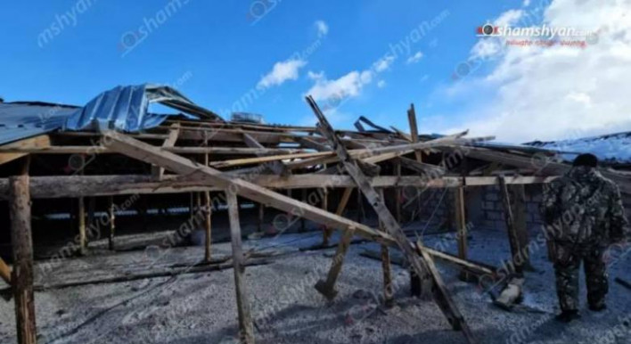Արագածոտնում քամին 100-ավոր տների, մանկապարտեզի, դպրոցի տանիքներ է պոկել ու շպրտել, կոտրել էլեկտրասյուներ