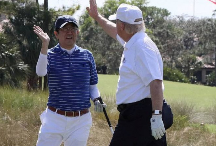 Ճապոնիայի վարչապետ Սինձո Աբեն Միացյալ Նահանգների նախագահ Դոնալդ Թրամփի հետ գոլֆ խաղալու ժամանակ ընկել է ավազի փոսը,հայտնում է ամերիկյան ABC News-ը:Ամերիկյան լրատվամիջոցն ընդգծում է, որ Թրամփը կատարվածին մեծ ուշադրություն չի դարձրել:Խաղը կայացել էր Ճապոնիայում դեռևս նախորդ շաբաթ, սակայն միջադեպի տեսանյութը հայտնվել է համացանցում միայն հիմա և լայնորեն տարածվել է համացանցում:
