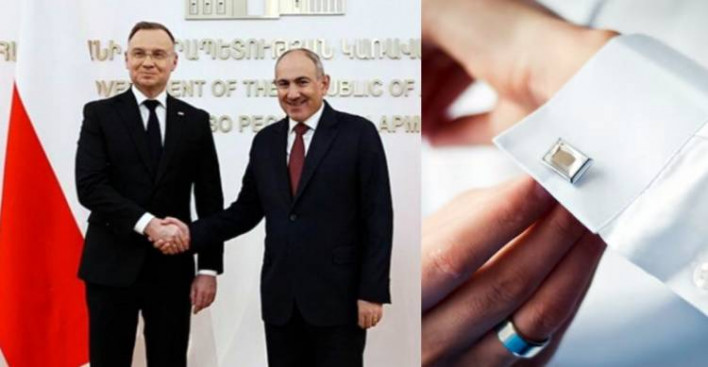 Կոռուպցիայի կանխարգելման հանձնաժողով ներկայացրած «Հանրային պաշտոն զբաղեցնող անձի կամ հանրային ծառայողների նվերների հաշվառման ձեւաթղթի» համաձայն՝ Նիկոլ Փաշինյանը նոյեմբերի 26-ին Լեհաստանի նախագահ Անջեյ Դուդայի կողմից ստացել է նվեր՝ տղամարդու հագուստի թեւքածալի վրա տեղադրվող ճարմանդ՝ 3 զույգ, 925 հարգի արծաթից, քարերով։ Քարերը՝ սաթ, օինքս։