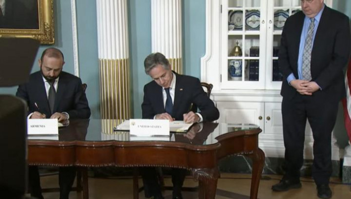 Վաշինգտոնում ՀՀ ԱԳ նախարար Արարատ Միրզոյանը և ԱՄՆ պետքարտուղար Էնթոնի Բլինքենը ստորագրում են Հայաստանի Հանրապետության և Ամերիկայի Միացյալ Նահանգների միջև ռազմավարական գործընկերության մասին փաստաթուղթը։