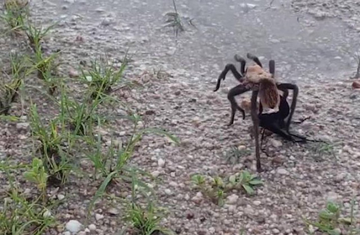 Արեւադարձային կրետը հարձակվել է մորմի վրա, որը չափերով կրկնակի գերազանցում է նրան: Տեսագրությունը հրապարակված է YouTube-ում։ Ինչպես ցուցադրված է կադրերում, մորմային ճուռակը մի քանի անգամ խայթել է սարդին: