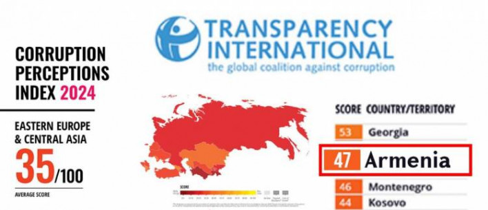 «Ժողովուրդ» օրաթերթը գրում է. ««Ժողովուրդ» օրաթերթը տեղեկացավ, որ «Թրանսփարենսի ինթերնեյշնլ» հակակոռուպցիոն մարմինը 2024 թվականի զեկույցում գրել է, որ կոռուպցիայի ընկալման սանդղակում Հայաստանի կոռուպցիայի ընկալման համաթիվը մնում է նույնը՝ 47: Ոչ մի տեղաշարժ չկա: Այսինքն՝ կոռուպցիայի դեմ պայքարի գործում ոչ մի քայլ առաջ չենք գնացել: Տեղեկացնենք, որ 0-ն, ըստ «Թրանսփարենսիի», բացարձակապես կոռումպացվածն է, իսկ 100-ը՝ բացարձակապես մաքուր սանդղակը, իսկ եթե արդեն 2 տարի նույն թիվն է ֆիքսում այս անկախ մարմինը, նշանակում է, որ կոռուպցիայի դեմ պայքարում Փաշինյանի իշխանությունը 0 արդյունք է տվել: Սա այն դեպքում, երբ Արեւմտյան տարաբնույթ դրամաշնորհային ծրագրեր են իրականացվել, երբ հակակոռուպցիոն տարբեր մարմիններ են հիմնվել՝ այդ թվում եւ առանձին դատարան, բայց, միեւնույնն է, կոռուպցիայի դեմ պայքարում հեղինակավոր «Թրանսփարենսի ինթերնեյշնլ» կառույցը արձանագրել է անարդյունք աշխատանք. ոչ մի տեղաշարժ չկա:»
