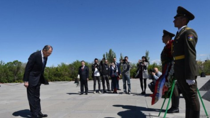 Օդանավակայանից ՌԴ ԱԳՆ -ն առաջինն այցելել է Ծիծեռնակաբերդ՝ հարգանքի տուրք մատուցելու Հայոց ցեղասպանության զոհերի հիշատակին։
