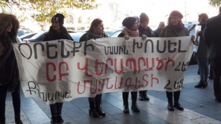 Այսօր «Ընդդեմ կանանց նկատմամբ բռնության» կոալիցիան՝ «Ավանդույթը օրենքի կարգավորման հիմք չէ» խորագրով բողոքիակցիա է անցկացրել ՀՀ կառավարության շենքի առջև: Դեռևս ՀՀ կառավարության նախորդ նիստում՝ նոյեմբերի 16-ին, գործադիրը հավանության էրարժանացրել «Ընտանիքում բռնության կանխարգելման, ընտանիքում բռնության ենթարկված անձանց պաշտպանության և ընտանիքում համերաշխության վերականգնման մասին» վերտառությամբ օրենքի նախագիծը: «Ընդդեմ կանանց նկատմամբ բռնության» կոալիցիան իր անհամաձայնությունն էր հայտնել Նախագծի կոնցեպտուալ փոփոխության վերաբերյալ, և հայտարարել, որ Կոալիցիան ավելի ուշ հանդես կգա իրավական վերլուծությամբ։ Այսօրվա ակցիայի ժամանակ իրավական վերլուծության փաթեթը հանձնվեց ՀՀ կառավարության ղեկավար՝ Կարեն Կարապետյանին. ՀՀ վարչապետ Կարեն Կարապետյանին Սույն թվականի նոյեմբերի 16-ին, ՀՀ Կառավարությունը՝ 1433 – Ա որոշմամբ հավանություն տվեց «Ընտանիքում բռնության կանխարգելման, ընտանիքում բռնության ենթարկված անձանց պաշտպանության և ընտանիքում համերաշխության վերականգնման մասին» վերտառությամբ օրենքի նախագծին և հարակից օրենքների նախագծերի փաթեթներին, որոնցում տեղ են գտել մի շարք փոփոխություններ՝ նախկինում հանրային քննարկման ներկայացված «Ընտանեկան բռնության կանխարգելման և ընտանեկան բռնության ենթարկված անձանց պաշտպանության մասին» ՀՀ օրենքի և հարակից օրենքների նախագծի համեմատությամբ: «Ընդդեմ կանանց նկատմամբ բռնության» կոալիցիան (այսուհետ՝ Կոալիցիա) ողջունում է Լրամշակված նախագծում տեղ գտած մի շարք բարելավումներ, ինչպիսիք են հոգեբանական բռնության դրսևորումների մեջ հղիության արհեստական ընդհատման հարկադրանքի ներառումը, անտեսման, որպես ընտանեկան բռնության առանձին տեսակի նախատեսումը, ռեաբիլիտացիոն ծրագրերի սահմանումը և դրանց կիրառման դեպքերի մատնանշումը, պաշտպանական որոշումները երկու անգամ երկարաձգելու հնարավորության սահմանումը, գործի փաստական հանգամանքների ի պաշտոնե (“ex officio”) պարզումը քաղաքացիական դատարանի կողմից՝ պաշտպանական որոշումների կայացման ժամանակ և ընտանեկան բռնության մասնավոր մեղադրանքի գործերը ex officio կարգով շարունակելու ընթացակարգ սահմանող նորմերի նախատեսումը ՀՀ քրեական դատավարության օրենսգրքում: Միաժամանակ, Կոալիցիան իր խորին վրդովմունքն է հայտնում լրամշակված նախագծում տեղ գտած այն համակարգային փոփոխությունների կապակցությամբ, որոնք խեղաթյուրում են նախագծի բուն իմաստը և զգալիորեն թուլացնում դրա արդյունավետությունը: Մասնավորապես.