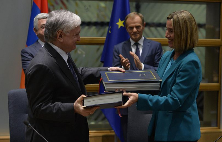 Հայաստանի և Եվրոպական Միության միջև Համապարփակ և ընդլայնված գործընկերության մասին համաձայնագիրն աջակցում է տարածաշրջանային հակամարտությունների, այդ թվում՝ Լեռնային Ղարաբաղի հակամարտության խաղաղ կարգավորմանը: Բրյուսելում Հայաստանի և Եվրոպական Միության միջև համաձայնագրի ստորագրումից հետո այդ մասին ասաց ԵՄ արտաքին քաղաքականության և անվտանգության հարցերով գերագույն հանձնակատար Ֆեդերիկա Մոգերինին։ «Մենք աջակցելու ենք ԵԱՀԿ Մինսկի խմբի համանախագահների ջանքերին, որոնք ուղղված են հակամարտության խաղաղ կարգավորմանը»,- «Արմենպրես»,-ի հաղորդմամբ, նշեց Մոգերինին:Նա ընդգծեց, որ Եվրոպական միությունն առաջին անգամ է նման համաձայնագիր ստորագրում մի երկրի հետ, որը Եվրասիական տնտեսական միության անդամ է: Մոգերինին ավելացրեց, որ այժմ կարևոր է, որպեսզի ԵՄ-ն և Հայաստանը միասին գործնական քայլեր ձեռնարկվեն համաձայնագիրը կյանքի կոչելու ուղղությամբ: Նրա խոսքով, պարբերաբար մոնիթորինգ է իրականացվելու համաձայնագրի կատարման աշխատանքների վերաբերյալ:Ֆեդերիկա Մոգերինին շեշտեց, որ համաձայնագիրը ենթադրում է սերտ համագործակցություն տրանսպորտի, էներգետիկայի, մարդկանց տեղաշարժի, բիզնեսի և ներդրումների, առևտրի ոլորտներում: