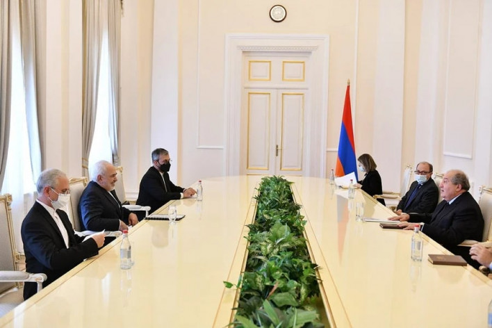 Լուսանկարում՝ 26 Մայիս, 2021 թ. ՀՀ նախագահ Արմեն Սարգսյանը հյուրընկալում է Իրանի Իսլամական Հանրապետության արտաքին գործերի նախարար Մոհամմադ Ջավադ Զարիֆին և նրա գլխավորած պատվիրակությանը: