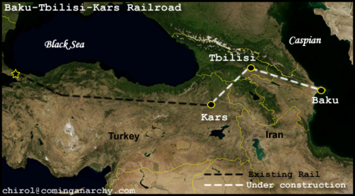 Հոկտեմբերի 30-ին շահագործման հանձնված, Հայաստանը շրջանցող Բաքու-Թբիլիսի-Կարս երկաթգիծը սկսել է իր գործունեությունը: Ըստ թուրքական «Haberler» լրատվամիջոցի՝ նոյեմբերի 28-ին գնացքը Թուրքիայի Մերսին քաղաքից Կարսի, Թբիլիսիի տարածքով շարժվելու է դեպի Բաքու: Ուղերթի ընթացքում 16 վագոններով գնացքը Բաքու է տեղափոխելու 650 տոննա սոյայի փոշի և կերամիկայի համար նախատեսված սոսինձներ: Սպասվում է, որ 2100կմ ճանապարհը գնացքը կանցնի 96 ժամում: Հիշեցնենք, որ Բաքու-Թբիլիսի-Կարս երկաթուղու կառուցումը իրականացվել էր Վրաստանի, Թուրքիայի և Ադրբեջանի միջև կնքված պայմանագրի շրջանակում։ Նախագիծը տրանսպորտային միջանցք է, որը կմիացնի Ադրբեջանի, Վրաստանի ու Թուրքիայի երկաթուղային ցանցերը: Այն մեկնարկել է 2007-ին: Սկզբնական արժեքը գնահատվել էր $422 մլն, որից 220 մլն պետք է ուղղվեր վրացական կողմի կառուցմանը, 220 մլն-ը՝ թուրքական, սակայն հետագայում պայմանագրի ֆինանսական հարցը վերանայվեց: Աղբյուրը` Ermenihaber.am