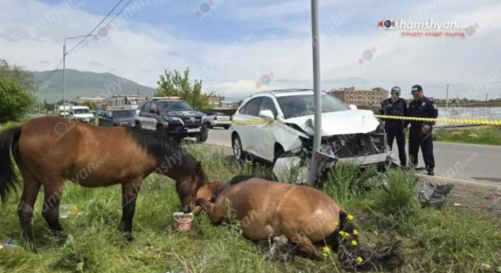Այսօր՝ մայիսի 12-ին, արտակարգ դեպք է տեղի ունեցել Կոտայքի մարզում: Ժամը 10:30-ի սահմաններում Երևանի բնակիչ 33-ամյա Լուսինե Թ.-ն իր վարած «Lexus» մակնիշի ավտոմեքենայով Եղվարդ քաղաքի սկզբնամասում՝ դեպի Երևան ընթանալիս, բախվել է ավտոմեքենայի առջև հայտնված ձիուն, ապա դուրս եկել երթևեկելի գոտուց և բախվել երկաթե էլեկտրասյանը: