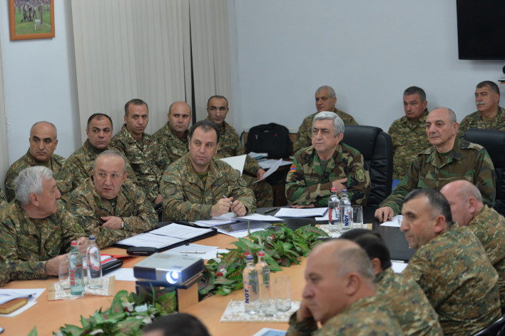 Սարգսյանը Արցախի Նախագահ Բակո Սահակյանի հետ այցելել է Պաշտպանության բանակի շտաբ, որտեղ տեղի է ունեցել ավանդաբար անցկացվող տարեվերջյան խորհրդակցությունը՝ ՀՀ և ԱՀ պաշտպանության նախարարների և բարձրաստիճան հրամկազմի ներկայացուցիչների մասնակցությամբ: Քննարկվել են բանակաշինությանը վերաբերող հարցեր: Խորհրդակցության մասնակիցները լսել են Պաշտպանության բանակի հրամանատարի զեկույցը: