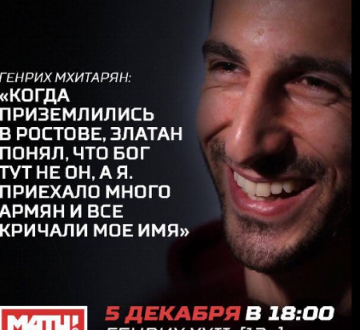 Ռուսական «Матч ТВ» հեռուստաալիքի եթերում ցուցադրվել է վավերագրական ֆիլմ, որը նվիրված է անգլիական «Մանչեսթեր Յունայթեդի» հայ կիսապաշտպան Հենրիխ Մխիթարյանին: Ֆիլմում Մխիթարյանը պատմել է իր կարիերայի, ընտանիքի և Զլատան Իբրահիմովիչի հետ ընկերության մասին. «Երբ վայրէջք կատարեցինք Ռոստովում, Զլատանը հասկացավ, որ այնտեղ Աստվածն ինքը չէ, այլ ես: Շատ հայեր էին եկել և բոլորը բացականչում էին իմ անունը»: