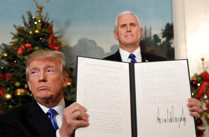Անտեսելով իսրայելա-պաղեստինյան հակամարտության մեջ չներքաշվելու մահմեդական աշխարհի և ՄԱԿ-ի հորդորները՝ ԱՄՆ-ի նախագահ Դոնալ Թրամփը Երուսաղեմը ճանաչեց որպես Իսրայելի մայրաքաղաք: Նա նաև հանձնարարեց ԱՄՆ-ի դեսպանատունը տեղափոխել Երուսաղեմ: Այս մասին տեղեկացնում է «Ամերիկայի ձայնը»: ԱՄՆ-ի նախագահ Դոնալդ Թրամփը ի կատար ածեց ընտրարշավի ժամանակ իսրայելամետ ընտրողներին տրված իր խոստումը՝ ճանաչել Երուսաղեմը որպես Իսրայելի մայրաքաղաք: Դոնալդ Թրամփը ասում է,- «Այսօր վերջապես ասում ենք ակնհայտը, որ Երուսաղեմը Իսրայելի մայրաքաղաքն է: Սա ոչ այլ ինչ է, քան իրականության ճանաչում: Ես նաև Պետդեպարտամենտին հանձնարարում եմ սկսել ԱՄՆ-ի դեսպանատունը Երուսաղեմ տեղափոխելու գործընթացը: Եվ երբ դեսպանատունը կառուցված լինի, այն տուրք կլինի խաղաղությանը»: Հիշեցնենք, որ Երուսաղեմը միջազգայնորեն երբեք չի ճանաչվել որպես Իսրայելի մայրաքաղաք և բոլոր երկրների դեսպանությունները գտնվում են Թել Ավիվում: Մինչ Իսրայելը խրախուսել է մյուս երկրներին հետևել ԱՄՆ-ի օրինակին, տարածաշրջանում այս լուրը անհանգստության ալիք է բարձրացրել: Պաղեստինցիներն այս քայլը անվանել են «մահվան համբույր» Մերձավոր Արևելքում խաղաղության հաստատման գործընթացում: Պաղեստինցիների նախագահ Մահմուդ Աբբասի խոսնակ Նաբիլ Աբու Ռուդեինեհն ասում է,- «Նախագահ Աբբասի դիրքորոշումը հստակ է: ԱՄՆ-ի դեսպանատանտեղափոխումը Երուսաղեմ դեմ է միջազգային օրենքին և՝ անընդունելի մեր կողմից»: Պաղեստինցիները դեմ են Թրամփի այս որոշմանը, ,քանի որ ցանկանում են Արևելյան Երուսաղեմը տեսնել, որպես իրենց ապագա պետության մայրաքաղաք: Արաբական պետությունների լիգան երեքշաբթի օրը նախազգուշացրել էր Թրամփին չճանաչել Երուսաղեմը որպես Իսրայելի մայրաքաղաք, այս քայլը նկարագրելով ինչպես «բացահայտ արգեսիա» արաբների դեմ: Թուրքիայի նախագահն ու Իրաքի վարչապետը դատապարտել են այս քայլը նույնիսկ նախքան Թրամփի պաշտոնական հայտարարությունը: Իրաքի վարչապետ Հեյդար Ալ Աբադին ասում է,- «Իրաքի կառավարությունը նախազգուշացնում է, որ պաղեստինցիների, արաբների, մահմեդական աշխարհի ու այլ կրոնների անտեսումը լուրջ հետևանքներ կունենա տարածաշրջանի կայունության և աշխարհի վրա: Երուսաղեմը բոլոր կրոնների և էթնիկ խմբերի գոյակցության կենտրոնն է, և ոչ մի առանձին կառույց չի կարող այս հարցի շուրջ միանձնյա որոշում ընդունել»: ՄԱԿ-ը նույնպես անհանգստություն էր հայտնել որևէ քայլի շուրջ, որը կարող է Մերձավոր Արևելքում խորացնել լարվածությունը: ՄԱԿ-ի գլխավոր քարտուղարի խոսնակ Ստեֆան Դյուժարիկն ասել է,- «Մենք միշտ դիտարկել ենք Երուսաղեմը որպես մի խնդիր, որը պետք է լուծվի երկու կողմերի ուղիղ բանակցությունների միջոցով»: ԱՄՆ-ի նախագահը այս քայլը բնորոշել է որպես առաջընթաց իսրայելա-ամերիկյան հարաբերություններում, սակայն մատնանշել է, որ չի ցանկանում վատթարացնել հարաբերությունները արաբական աշխարհի հետ: Միացյալ Նահանգները, նրա խոսքերով, չի միջամտի Երուսաղեմի սահմանների հստակեցման բանակցություններին, և իր դիրքորոշումն առավելագույն կերպով ներկայացնելու համար ԱՄՆ-ի փոխնախագահ Մայք Փենսը կմեկնի Մերձավոր Արևելք: