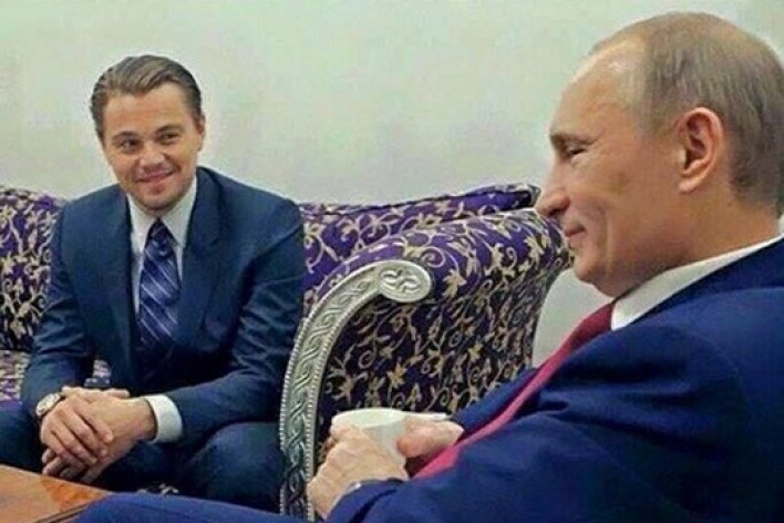 Լուսանկարում պատկերված են Դի Կապրիոն ու Պուտինը: Լուսանկարին տեքստ է հավելված. «Շնորհակալություն, Վլադիմիր Վլադիմիրովիչ: -Դատարկ բան է, մոռացի’ր»: