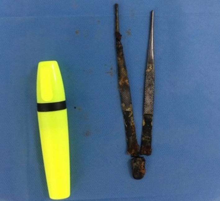 «Ինովա» կլինիկան տրամադրել է նաև տխրահռչակ պինցետի լուսանկարը: Մարկերը պինցետի կողքն է դրված պատկերացում կազմելու համար, թե ինչ չափսեր ունի հիվանդի որովայնում մոռացված առարկան: