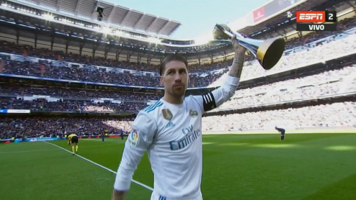 «Ռեալի» ավագ Սերխիո Ռամոսն Իսպանիայի առաջնության 17-րդ տուրի` «Բարսելոնայի» հետ խաղից առաջ «Սանտիագո Բեռնաբեու» մարզադաշտում ցուցադրել է աշխարհի ակումբային առաջնության գավաթը:Այդ ընթացքում մարզադաշտի երկրպագուները վանկարկել են «Չեմպիոններ, չեմպիոններ»: