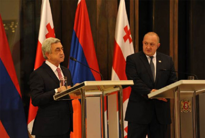 Հայաստանի և Վրաստանի նախագահները Թբիլիսիում կայացած հանդիպման ընթացքում անդրադարձել են երկու երկրների միջև ընդլայնվող առևտրատնտեսական օրակարգին՝ առաջին հերթին կարևորելով ընթացիկ համագործակցության այնպիսի նշանակալի ոլորտների, ինչպիսիք են էներգետիկան և տրանսպորտը: «Անդրադարձել ենք մեր երկրների տարանցիկ կարողությունների և դրանց արդյունավետ օգտագործման հնարավորությունների զարգացմանը: Խոսեցինք զբոսաշրջության, տեղեկատվական տեխնոլոգիաների ոլորտում նախանշված ծրագրերի իրականացման մասին՝ հաշվի առնելով այստեղ առկա մեծ ներուժը: Ես պարոն նախագահին ասացի, որ վրացական կողմը պետք է օգտագործի Հայաստանի հնարավորությունները, ազատ տնտեսական գոտիների առկայությունը և իր արտադրանքը Եվրասիական տնտեսական միության շուկայում վաճառել: Ցանկացած գրանցված ընկերություն Հայաստանում կարող է շատ օգտակար լինել այս առումով: Հատկապես ուզում եմ շեշտել Իրանի սահմանին ստեղծված նոր ազատ տնտեսական գոտին, որը շատ մեծ հնարավորություն կտա վրացական ապրանքներն ու ծառայություններն արտահանել մեկ այլ վճարունակ շուկա՝ Իրանի Իսլամական Հանրապետություն»,- ասել է Սերժ Սարգսյանը՝ լրագրողներին: