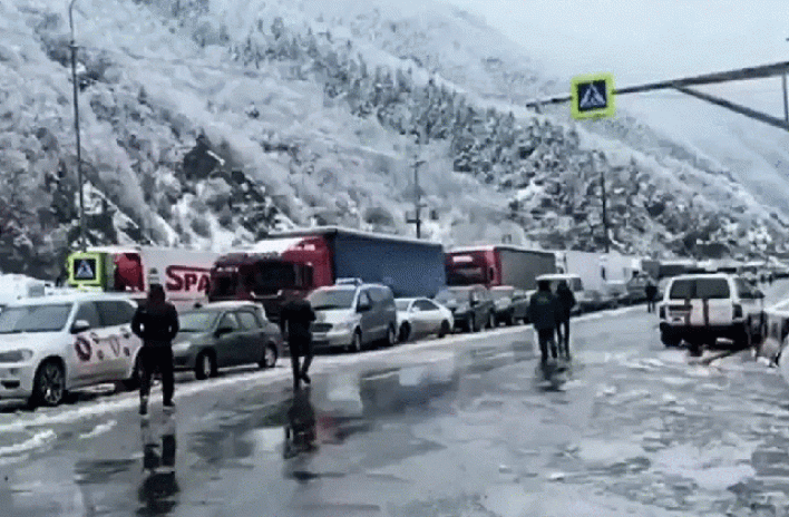 Մցխեթա-Ստեփանծմինդա-Լարս միջազգային մայրուղում սահմանափակումները մտցվել են բքի ու վատ տեսանելիության պատճառով: