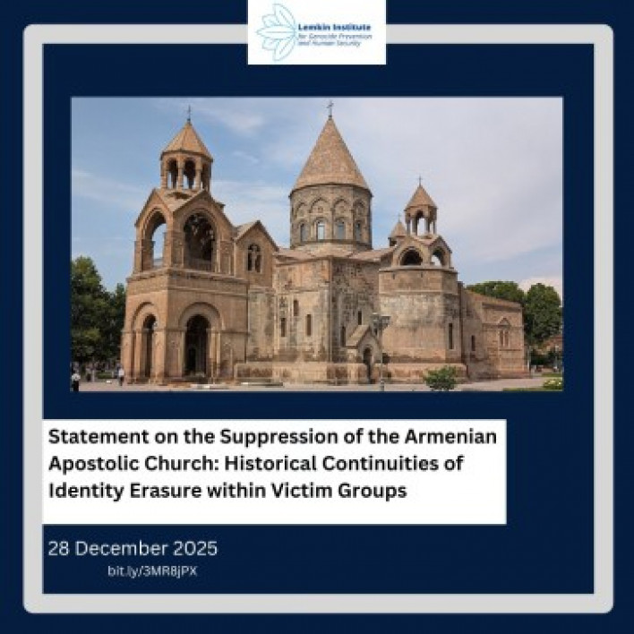 «Լեմկինի ցեղասպանության կանխարգելման ինստիտուտը խորը մտահոգություն է հայտնում Հայաստանի Հանրապետությունում Հայ Առաքելական Եկեղեցու դեմ շարունակվող պետական բռնաճնշումների առնչությամբ, այդ թվում՝ հոգևորականների կալանավորումների և ահաբեկման, եկեղեցական հաստատությունների թիրախավորման, ինչպես նաև կրոնական առաջնորդներին լռեցնելու նպատակով իրավական համակարգի աճող կիրառման։ Այս զարգացումները ցավալի օրինակ են այն բանի, թե ինչպես կարող են ցեղասպանական գործընթացները ներքինացվել արտաքին սպառնալիքի պայմաններում։