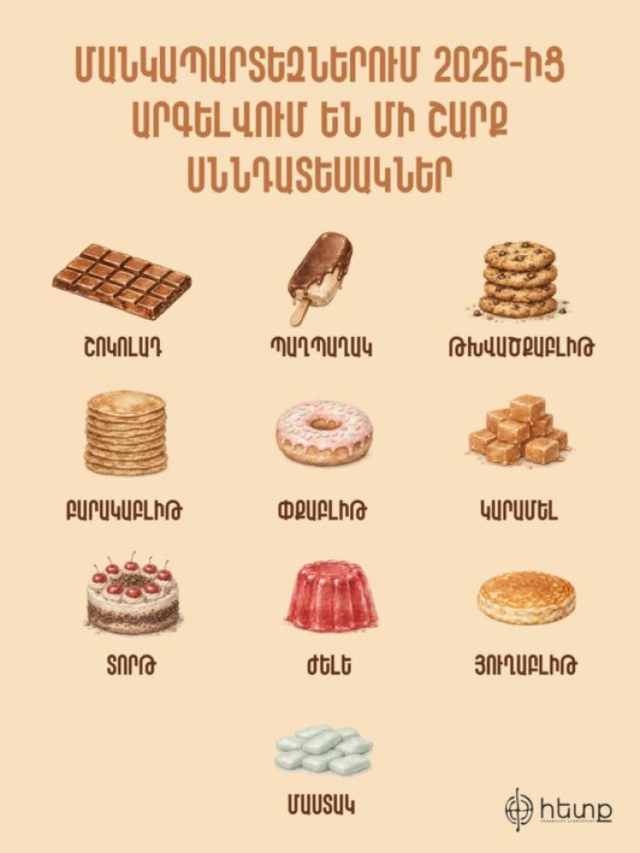 Շոկոլադ, տորթեր, թեյ. 2026-ից մանկապարտեզներում արգելվում են մի շարք սննդատեսակներ․ «Հետք»