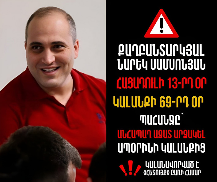 Այսօր Սամսոնյանը դեռ պատժախցում է։ Սպասում ենք, որ ՕՐ ԱՌԱՋ հիվանդանոց տեղափոխելն իրականություն դառնա։