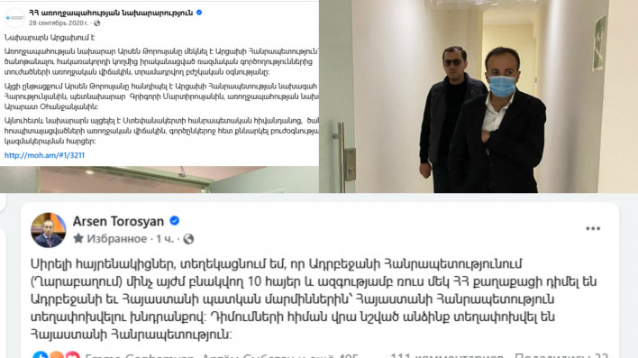 Հարց Արսեն Թորոսյանին. Եթե «Ղարաբաղը» Ադրբեջանի Հանրապետություն է, ապա 2020 թվականի սեպտեմբերի 28-ին Դուք ինչպե՞ս եք ապօրինի հատել Հայաստան- Ադրբեջան պետական սահմանը և այցելել Ղարաբաղ, ավելին՝ այտեղ հանդիպել եք «Ղարաբաղը օկուպացրած սեպարատիստների ղեկավար» Արայիկ Հարությունյանի հետ: Ակնկալում եմ պարզաբանում: