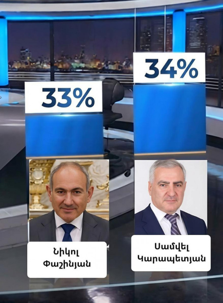 Սա այսօր ստացած հարցման վերջնարդյունքներն են։ Հարցումը կատարել է EMPIRICA https://empirica.am/ և հարցը եղել է ում կընտրեիք եթե ընտրությունը լիներ այս երկու գործիչների միջև: Այս մասին գրել է «Մեր ձևով» ժողովրդական շարժման համակարգող Նարեկ Կարապետյանը։