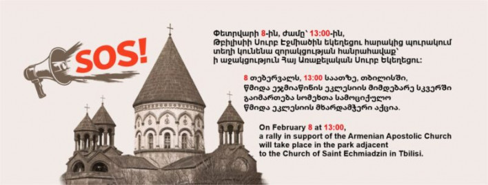 Փետրվարի 8-ին՝ ժամը՝ 13:00-ին, Թբիլիսիի Սուրբ Էջմիածին եկեղեցու հարակից պուրակում տեղի կունենա զորակցության հանրահավաք՝ ի աջակցություն Հայ Առաքելական Սուրբ Եկեղեցու: