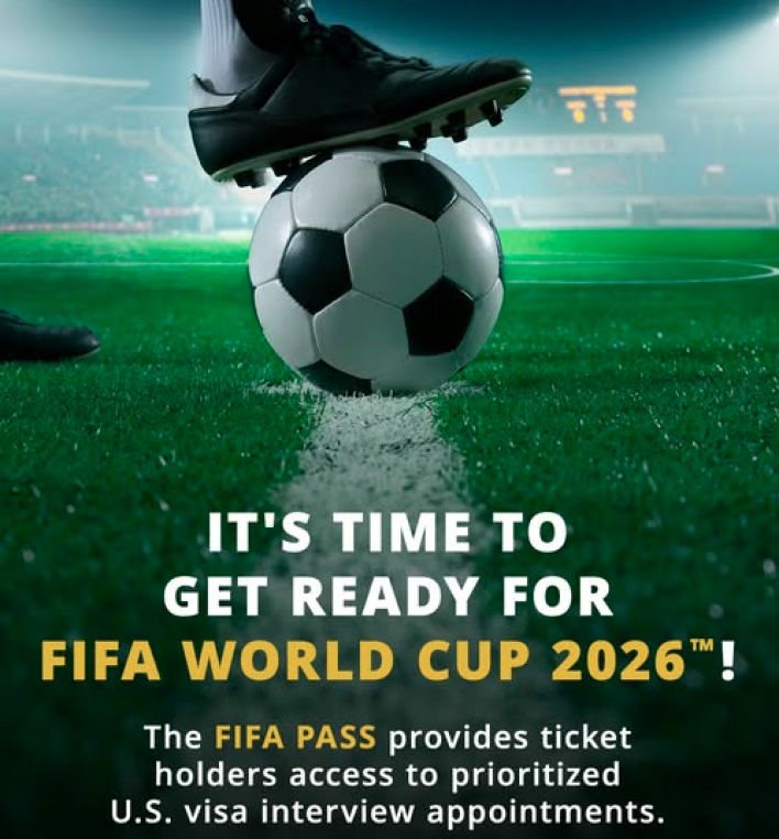 ՀՀ-ում ԱՄՆ դեսպանությունից հայտնում են, որ 2026թ․ ՖԻՖԱ-ի աշխարհի առաջնության տոմսեր ունեցող անձինք, որոնց անհրաժեշտ է ԱՄՆ վիզա, կարող են վիզայի հարցազրույցի օր ամրագրել արտահերթ ժամադրության ամրագրման համակարգի միջոցով (FIFA PASS)։ Այդ մասին տեղեկանում ենք դեսպանության Ֆեյսբուքի էջից։