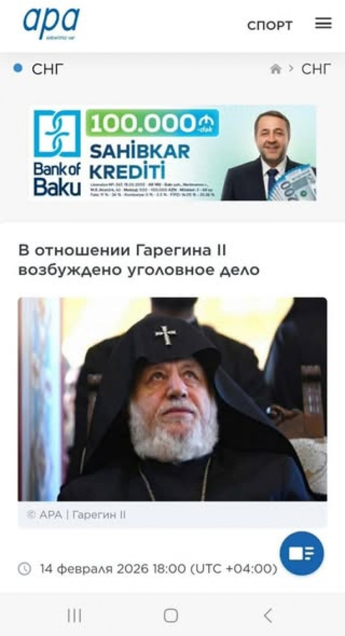 Ադրբեջանական լրատվամիջոցները ցնծում են. Կաթողիկոսի դեմ քրգործ է հարուցվել