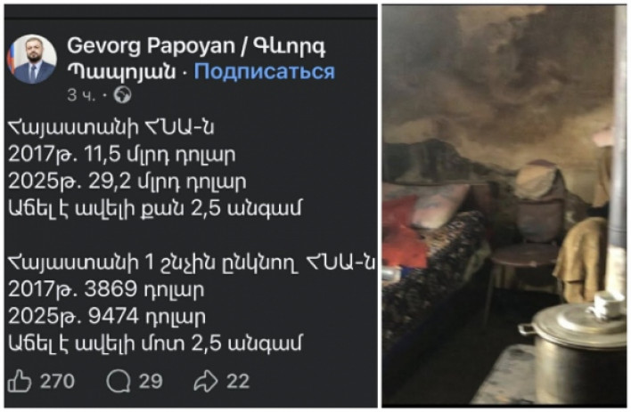 Հիմա հարց նիկոլաէկոնոմիկայի գիգանտ Պապոյան Գևորգին․ եթե մեկ շնչին բաժին ընկնող ՀՆԱ-ն ավելացել է 2,5 անգամ, ինչո՞ւ է աղքատությունը մնացել նույն մակարդակի վրա։ Պարզ տրամաբանությունը հուշում է, որ եթե առողջ ու ներառական է աճել տնտեսությունը, ապա այդ աճին համահունչ պետք է կրճատվեր աղքատությունը։ Բայց տեսնում ենք, որ Հայաստանը շատ հեռու է նման ցուցանիշ ունենալուց։