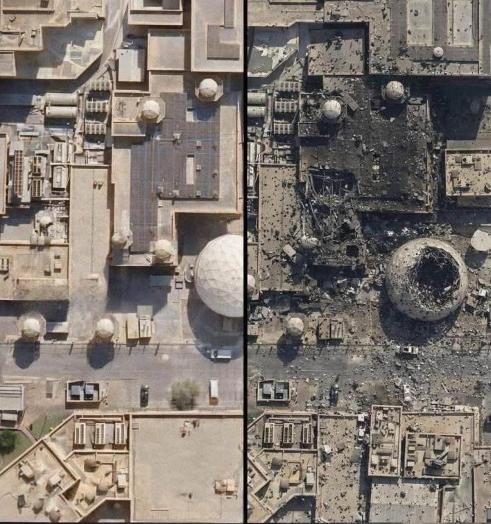 Իրանական Fars լրատվական գործակալությունը տարածել է արբանյակային լուսանկարներ, որոնցում, ինչպես պնդվում է, պատկերված է Կատարում տեղակայված ամերիկյան վաղ նախազգուշացման ռադիոլոկացիոն համալիրի ոչնչացումը։ Համալիրի արժեքը գնահատվում է մոտ 1,1 միլիարդ դոլար։ Գործակալության տվյալներով՝ տվյալ համակարգը նախատեսված էր իրանական հրթիռների արձակումները հետևելու համար։