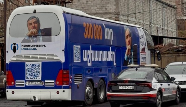 Խոսքը այն ավտոբուսներից մեկի մասին է, որով կուսակցության անդամները շրջում են մարզերով, մեջը երգում, պարում, այնպես ինչպես Նիկոլ Փաշինյանը եւ «Քաղաքացիական պայմանագիր» կուսակցության ներկայացուցիչներն իրենց «ուրախ ավտոբուսում»։