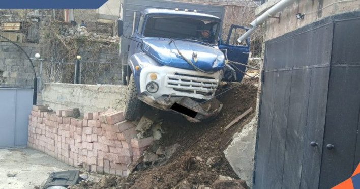 Բեռնատարը դուրս է եկել ճանապարհի երթևեկելի հատվածից, վնաuել՝ հարակից տան հենապատը և հայտնվել՝ տան բակում