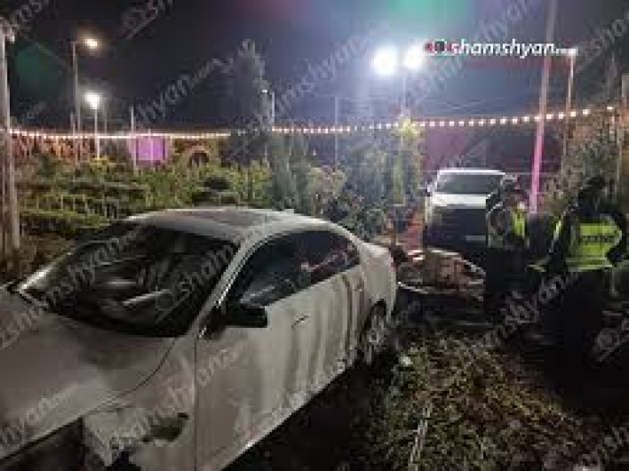 Արշակունյաց պողոտայում «BMW»-ն մխրճվել է ծաղկի սրահի առջև տեղադրված ծաղկամանների մեջ