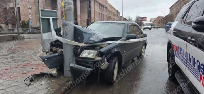 Գյումրիում բախվել են 2 «Mercedes»-ները, որոնցից մեկը բախվել է երկաթե սյանը․ կա վիրավոր