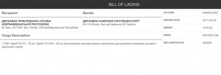 Հունվարի 13-ին ուկրաինացի բլոգեր diana-mihailova-ն հայտնել է, որ Ուկրաինան 2017 թ. Ադրբեջանի պետական սահմանապահ ծառայությանը (ՊՍԾ) վաճառել է 50 միավոր РК-2С և РК-2ОФ տեսակի կառավարվող հակատանկային հրթիռ: Նույն բլոգերը նաև հրապարակել է փաստաղթի պատճեն (Screenshot)` նշելով, որ այն վերցրել է Ուկրաինայի մաքսային ծառայությունից: Ըստ այս տեղեկության՝ 2017 թ. ապրիլին Ադրբեջանի ՊՍԾ-ն Ուկրաինայի «Ուկրսպեցէքսպորտ» պետական ընկերության միջոցով նույնպես ուկրաինական պետական «Լուչ» կոնստրուկտորական բյուրոյից գնել է «ցամաքային շարժվող և անշարժ թիրախներից խոցման» համար նախատեսված РК-2С և РК-2ОФ հակատանկային կառավարվող հրթիռներ (25-ական միավոր)՝ յուրաքանչյուրի համար վճարելով 48 հազար դոլար: