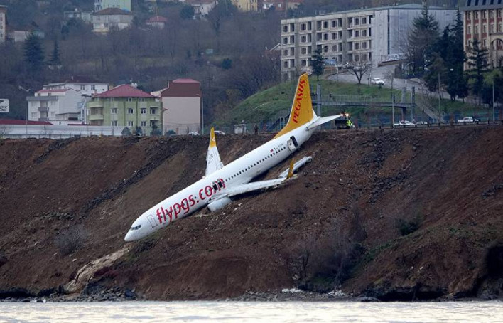 Համացանցում հրապարակվել է օդանավից ուղևորների տարհանման տեսանյութը, որը Տրապիզոնում դուրս էր եկել թռիչքավայրէջքային ուղու սահմամներից՝ խրվելով ցեխի մեջ՝ ժայռի եզրին։ Դեպքը տեղի է ունեցել շաբաթ օրը՝ Անկարայից ժամանած Pegasus Airlines-ի Boeing 737-800 օդանավի վայրժէջքի ժամանակ։ Օդանավում գտնվել է 162 մարդ, տուժածներ չկան։ Օդանավակայանը շարունակել է աշխատանքը սովորական ռեժիմով, իշխանությունները դեռևս չեն հայտնել տեղի ոււնեցածի պատճառը։