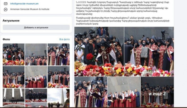 Հայոց ցեղասպանության թանգարան ինստիուտի կայքում ու սոցցանցի էջում անդրադարձել են վեհափառի այցին՝ լուսանկարներով ու տեղեկատվությամբ: Ժամեր անց՝ և՛ կայքից և՛ սոցանցից հեռացվել է գրառումն ամբողջությամբ: Այս պահին թանգարան ինստիուտի կայքում անդարադարձ կա միայն վարչապետի ու իշխանության մյուս ներկայացուցիչների այցին, գրում է «Ազատությունը»։