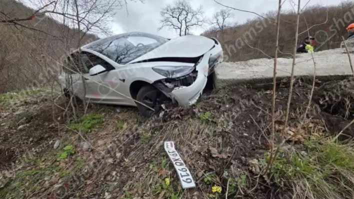 «Tesla»-ն Դիլիջանի ոլորանում բախվել է հողաթմբին և հայտնվել երթևեկելի գոտուց դուրս․ տուժածներ չկան