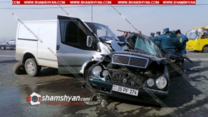 Խոշոր ավտովթար Երևանում. Թբիլիսյան խճուղում բախվել են Ford Transit-ն ու Mercedes-ը. կան վիրավորներ