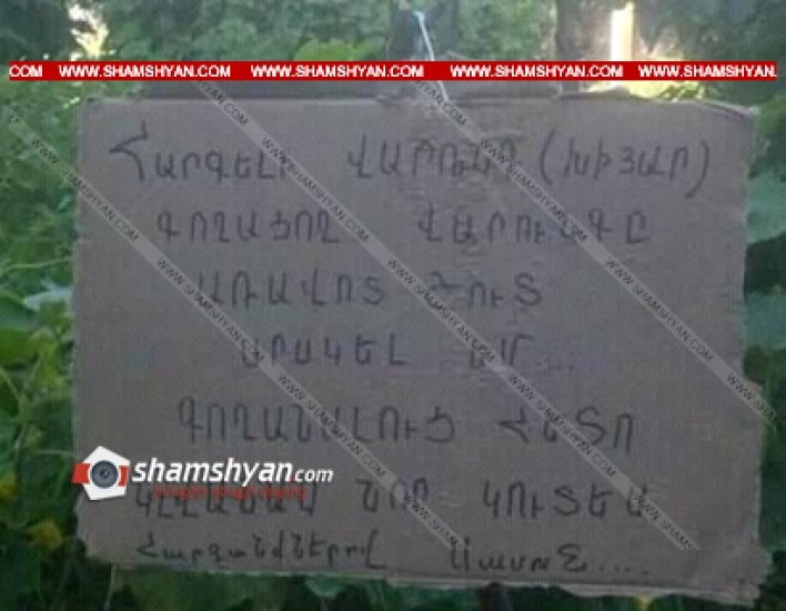 SHAMSHYAN.com-ի ընթերցող Մերուժ Սարգսյանը SHAMSHYAN.com-ի էլելկտրոնային հասցեին լուսանկար է ուղարկել՝ այն անվանելով «օրվա կադր»։ Հնարամիտ գյուղացին վարունգի «գողին» հուշում է. «Հարգելի վարունգ (խիյար) գողացող... Վարունգը առավոտ շուտ սրսկել եմ, գողանալուց հետո կլվանաս, նոր կուտես։ Հարգանքներով՝ Սասուն»։