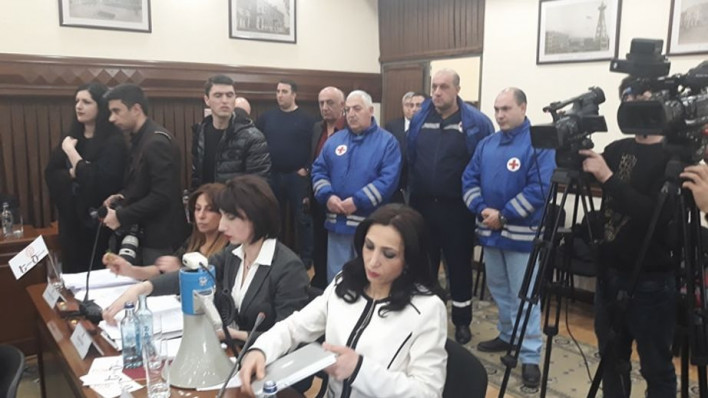Երեւանի ավագանու նիստը մոտ մեկ ժամ ընդմիջվելուց հետո շարունակվեց: Քաղաքապետ Տարոն Մարգարյանը հայտարարեց, որ եթե Երկիր ծիրանի խմբակցության անդամները հաջորդ անգամ էլ փորձեն խաթարել նիստի բնականոն ընթացքը, ապա կհեռացվեն դահլիճից: Նիստը սկսվելուն պես ՀՀԿ խմբակցության ավագանու անդամներից մեկը խնդրեց Տարոն Մարգարյանին թույլատրել շտապ օգնության աշխատակիցները ներկա լինեն նիստին։ Նշենք, որ քաղաքապետարանում բուժաշխատողներ ու մեծ թվով ոստիկաններ կան։ Վերջիններս նիստերի դռան մոտ սպասում են նիստի ավարտին, որից հետո, հավանաբար, քննչական գործողություններ կիրականացնեն: Նիստի վերսկսվելուն պես ելոււյթ ունեցավ ավագանու «Ելք» խմբակցության անդամ Դավիթ Խաժակյանը: Նա ներողություն խնդրեց քաղաքացիներից՝ նշելով, որ փոխանակ նրանց խնդիրներն այստեղ բարձրացվեն, նիստերը տապալվում են: Երկիր ծիրանի խմբակցության անդամներ Զարուհի Փոստանջյանը, Մարինա Խաչատրյանը եւ Սոնա Աղեկյանը մասնակցում են նիստին: