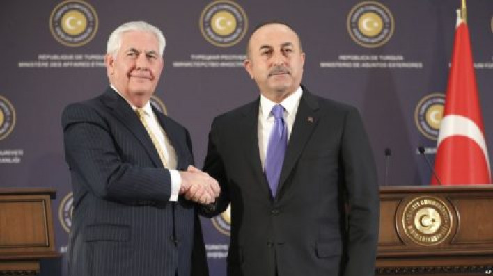 Անկարայում հանդիպում են ունեցել Թուրքիայի ու ԱՄՆ-ի արտաքին գերատեսչությունների ղեկավարները ու քննարկել են Սիրիայում իրար հակասող շահերը: Գլխավոր խնդիրը քրդական զորամիավորումների նկատմամբ նրանց վերաբերմունք է: Թուրքիան Միացյալ Նահանգներին առաջարկում է, որ քրդերին պատկանող Ժողովրդի պաշտպանության միավորումները Սիրիայում հետ քաշեն իրենց ուժերը դեպի Եփրատ գետի արեւելյան ափը: Թուրքիան առաջարկում է նաեւ, որ Սիրիայի Մանբիջի շրջանում միասնաբար տեղակայվեն ամերիկյան եւ թուրքական ուժեր: Թուրք մի պաշտոնյայի կողմից հայտնած տեղեկությունների համաձայն, Միացյալ Նահանգներն այժմ քննարկում է այս առաջարկները, որոնք պետքարտուղար Ռեքս Թիլերսոնին են ներկայացվել Անկարա կատարած նրա երկօրյա այցի ընթացքում: Թիլերսոնն Անկարայում հանդիպում էր ունեցել թուրք պաշտոնակից Մեւլութ Չավուշօղլուի հետ, բանակցելու համար քրդական զինված խմբավորումներին աջակցությունը շարունակելու Վաշինգտոնի ծրագրի շուրջ: Հանդիպումից հետո երկու երկրների արտաքին գերատեսչությունների ղեկավարները հրավիրել են համատեղ մամլո ասուլիս, որի ժամանակ Թիլերսոնը խոսել է Սիրիայում ընդհանուր նպատակների մասին: ‘’Մեր երկու երկներն ունեն նույն նպատակներն այստեղ: Գլխավոր նպատակը Սիրիայում ԴԱԵՇ-ի տապալումն է, անվտանգ ու կայուն գոտիների հաստատումը եւ անկախ ու միասնական Սիրիայի պահպանումը: Մենք հարգում ենք իր սահմանները պաշտպանելու Թուրքիայի օրինական իրավունքը, եւ լրջորեն ենք վերաբերվում անվտանգության հարցում ՆԱՏՕ-ում մեր դաշնակից Թուրքիայի մտահոգություններին’’: Խոսելով քրդաբնակ Աֆրինի շրջանի մասին`Թիլերսոնն ասել է, թե ԱՄՆ-ը կոչ է անում Թուրքիային ռազմական գործողություններում ցուցաբերել զսպվածություն` խուսափելու համար քաղաքացիների շրջանում կորուստներից եւ այնպիսի գործողություններից, որոնք ավելի կսրեին իրավիճակը տարածաշրջանում: Հիշեցնենք, որ Թուրքիան օդային ու ցամաքային գործողություններ սկսեց ընդդեմ Սիրիայի հյուսիսարեւմտյան Աֆրինի շրջանի` նպատակ ունենալով այստեղից հետ մղել քրդական Ժողովրդի պաշտպանության միավորումներին: Անկարան այս խմբավորումը համարում է ահաբեկչական կազմակերպություն եւ ունի այն մտավախությունը, որ Սիրիայում ինքնավարության որեւէ կարգավիճակ ստանալու դեպքում քրդերը նույնը կպհանջեն իր տարածքում: Թուրքիայի արտաքին գործերի նախարար Չավուշօղլուն մամլո ասուլիսի ժամանակ հայտարարեց, թե Թուրքիան Սիրիայում կկարողանա իրականացնել համատեղ քայլեր Միացյալ Նահանգների հետ այն ժամանակ, երբ Ժողովրդի պաշտպանության քրդական միավորումները կհեռանան Մանբիջի շրջակայքից: Նրա խոսքերով, իրենք կազմել են հետագա բանակցությունների ‘’մեխանիզմներ’’ եւ ծրագրում են նորից հանդիպել մարտի կեսերին, մնացյալ տարաձայնությունները հարթելու համար: