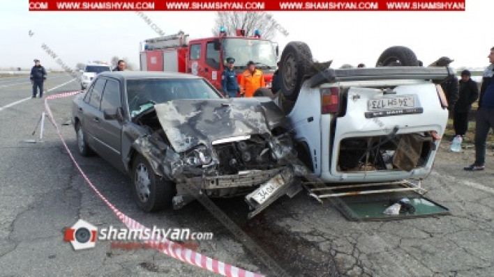 Խոշոր ավտովթար Արմավիրի մարզում. բախվել են 28-ամյա վարորդի Mercedes-ն ու 58-ամյա վարորդի Нива-ն. վերջինը գլխիվայր շրջվել է. ՖՈՏՈՌԵՊՈՐՏԱԺ