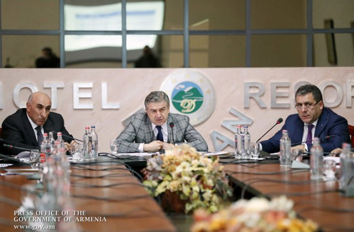 Զեկուցվել է, որ մթերման հետ կապված խնդիր չի եղել, ջրամատակարարման հետ կապված հարցերի դեպքում ՋՕ ընկերությունը ժամանակին արձագանքել է, թեպետ մարզում ոռոգման խնդիր դեռևս կա: Կարեն Կարապետյանն առաջարկել է դիտարկել հարցի լուծման հետևյալ տարբերակը. եթե կան հողատարածքներ (ամբողջությամբ կամ մասնակի), որոնք կարող են պոտենցիալ ներդրողին տրվել սեփականության իրավունքով՝ ջրամատակարարումն ապահովելու պայմանով, ապա այդ ճանապարհով գնալը կարող է աշխատել: Վարչապետը գոհունակություն է հայտնել գյուղատնտեսության ոլորտում 2017 թ. կատարված աշխատանքից և արձանագրված ցուցանիշներից՝ հորդորելով չհոգնել և ավելի մեծ թափով շարունակել աշխատել: