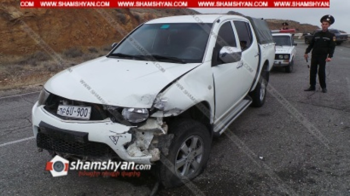 Այսօր՝ մարտի 9-ին, ավտովթար է տեղի ունեցել Արարատի մարզում։ Ժամը 12։00-ի սահմաններում Երևան-Մեղրի ավտոճանապարհի 7-րդ կմ հատվածում՝ Տիգրանաշեն գյուղի վարչական տարածքում, Տիգրանաշենի (Քյարքիի) ոլորաններում, բախվել են Արցախի Հանրապետության Ստեփանակերտ քաղաքի բնակիչ՝ 24-ամյա Արթուր Խուրշուդյանի վարած Mitsubishi մակնիշի ՊԲ 6 Մ 900 համարանիշի և Արարատի մարզի Այնթափ գյուղի բնակիչ՝ 26-ամյա Հենրիկ Մինասյանի վարած Opel Astra մակնիշի 35 ԼG 669 համարանիշի ավտոմեքենաները։ Ինչպես դեպքի վայրից հայտնում է ֆոտոլրագրող Գագիկ Շամշյանը, վթարի հետևանքով 3 հոգի մարմնական վնասվածքներով տեղափոխվել են Արարատի բժշկական կենտրոն։ Ըստ նախնական տեղեկությունների՝ վթարի մեղավորը եղել է Mitsubishi-ի վարորդը, ով ընդունել է իր մեղավորությունը։ Ռազմական Ոստիկանությունը պարզում է վիրավորների ինքնությունը։ Գ. Շամշյանի տեղեկություններով՝ Mitsubishi-ն հաշվառված է Արցախի Հանրապետության Պաշտպանության բանակի հաշվեկշռում։ Ֆոտոլրագրողը հայտնում է, որ Opel-ը անդունդը չի գահավիժել՝ շնորհիվ ճանապարհին տեղադրված երկաթե արգելապատնեշների։ Մանրամասները՝ shamshyan.com-ում։