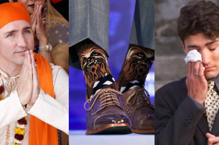Բադիկներ, եղջերուներ, արաբերենով գրություններ, մուլտհերոսներ և շատ այլ պատկերներ կարելի է տեսնել Կանադայի ղեկավարի գուլպաներին: