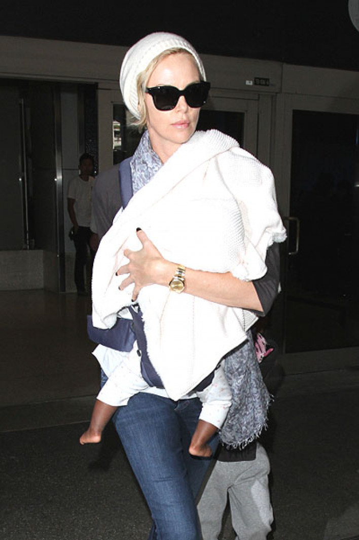 Պապարացիները Թերոնին «բռնացրել են» 3 տարեկան որդու` Ջեքսոնի և դայակի հետ` Լոս Անջելեսի օդանավակայանում: Աստղի գրկում մեղմ քնով քնած էր Ավգուստան, ում Շարլիզը սպիտակ ծածկոցով էր ծածկել: