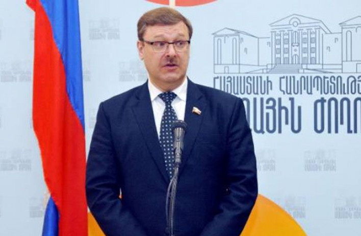 «Ռուսաստանը չի շարունակի նույն մասշտաբներով սպառազինություն մատակարարել Ադրբեջանին, որը կար մինչև 2016թ. ապրիլյան պատերազմը: Ռուսաստանը իրականացնում է այն պայմանագրերը, որոնք Ադրբեջանի հետ կնքվել են մինչև 2016թ. ապրիլ:Մենք պարտավոր ենք անել դա այդ պայմանագրերին համապատասխան: Սակայն իմ ունեցած տեղեկատվությամբ՝ դա չի լինի այն մասշտաբներով, որը կար 2016թ. ապրիլի դրությամբ: Անկասկած, մենք արձագանքում ենք իրավիճակին, որը տեղի ունեցավ 2016թ. ապրիլին»,- ԱԺ-ում լրագրողներին ասաց ՌԴ Դաշնային ժողովի Դաշնության խորհրդի միջազգային գործերով կոմիտեի նախագահ Կոնստանտին Կոսաչովը: