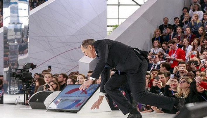 Լավրովի ոտքը սայթաքել է, և նա ծնկի է եկել: «Լավ է, որ աստիճանների վրա ընկա, և ոչ թե դիվանագիտական ճակատում»,- ասել է նա: